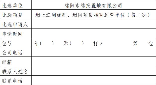 上述所有資料須加蓋比選申請(qǐng)人鮮章,到綿陽(yáng)市經(jīng)開區(qū)璟上江瀾營(yíng)銷中心3樓314室報(bào)名、購(gòu)買比選文件,文件售價(jià)為人民幣0元,售后不退。