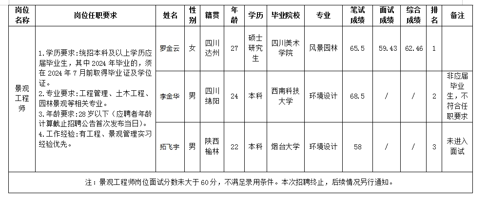 根據(jù)綿陽市綿投置地有限公司發(fā)布的招聘公告及招聘相關規(guī)定,經(jīng)筆試、面試等程序,現(xiàn)將筆試、面試成績予以公示。