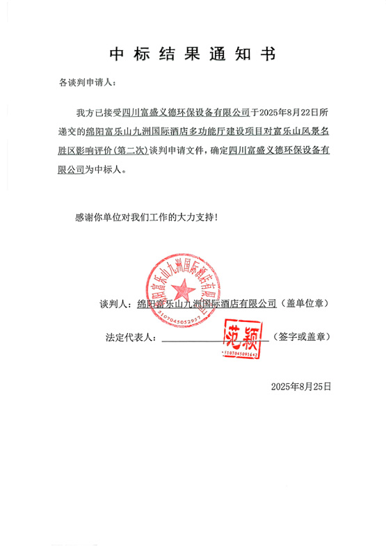 綿陽富樂山九洲國際酒店多功能廳建設項目對富樂山風景名勝區(qū)影響評價(第二次)中標結(jié)果通知