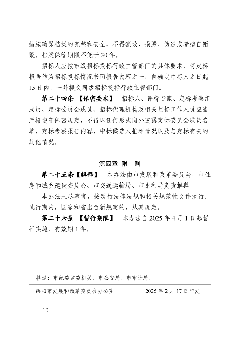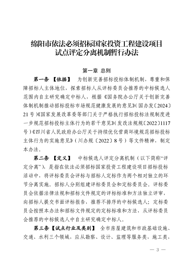 綿陽(yáng)市依法必須招標(biāo)國(guó)家投資工程建設(shè)項(xiàng)目試點(diǎn)評(píng)定分離機(jī)制暫行辦法(2025.2.28發(fā)布)